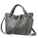 Handtasche Damen Taschen Kunstleder Schultertasche Henkeltasche Tote Tasche Groß mit Nieten Grau*